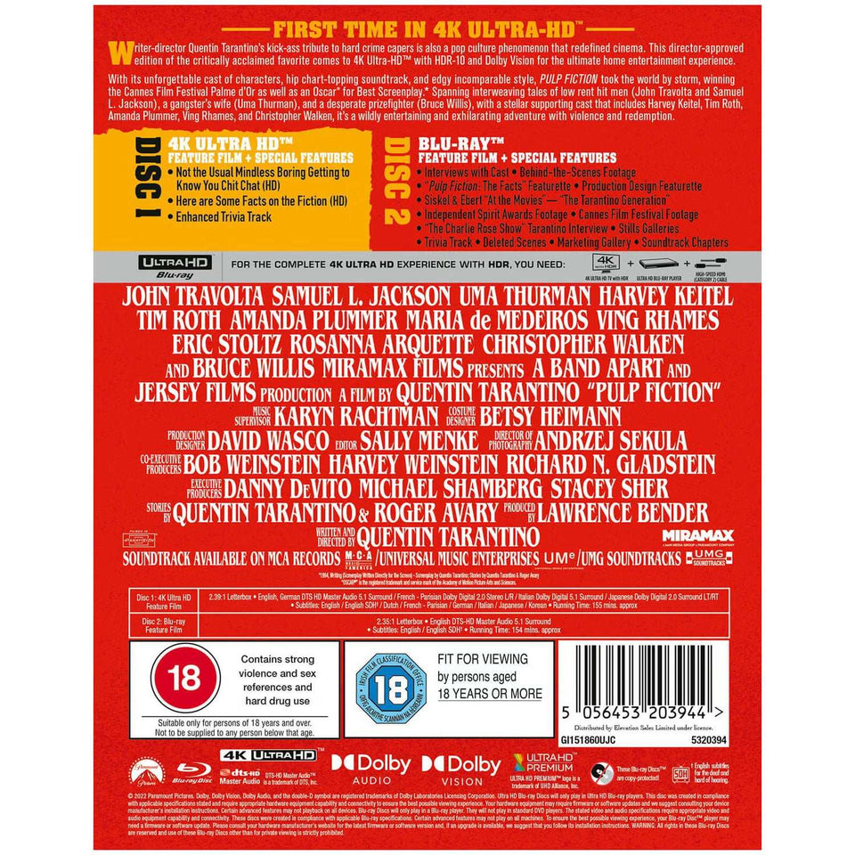 Pulp Fiction (1994) UK Limited Edition Steelbook - 4K UHD / Blu-ray Region Free